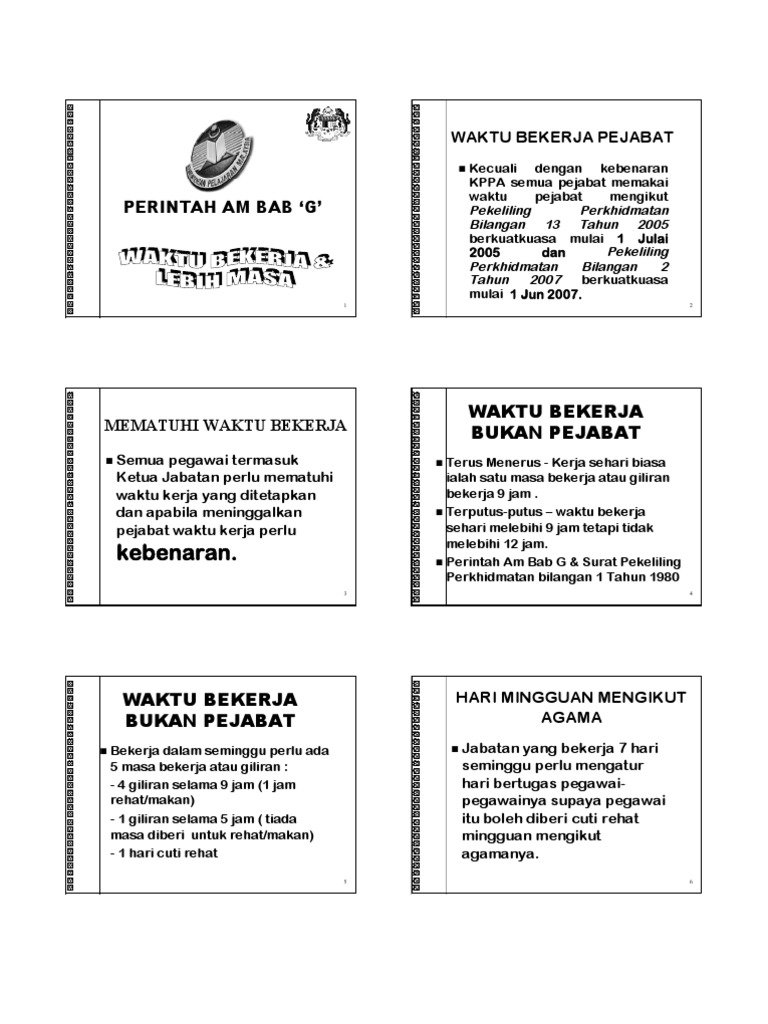 Perintah Am Bab G Waktu Bekerja Lebih Masa